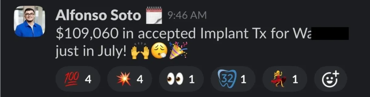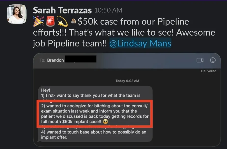 Great question! We track every appointment that we book into your system and our proprietary software allows us to show you exactly how many of those patients showed for their appointments and how much production came as a result.