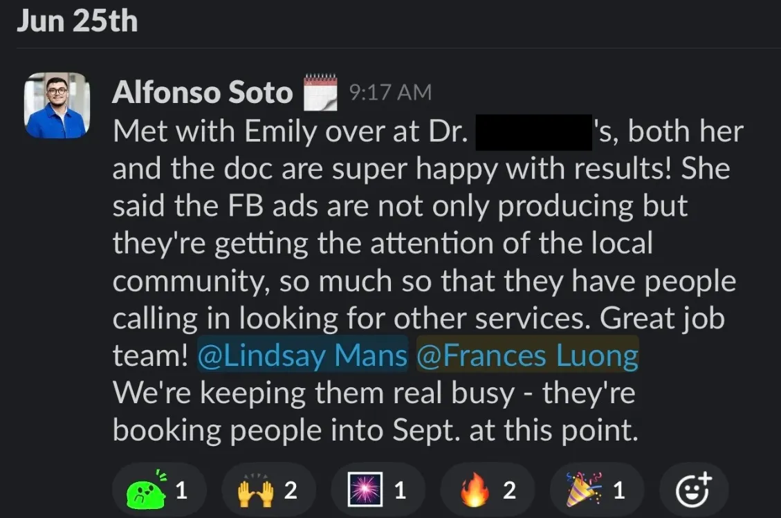 No. We're dead serious. This system works perfectly as long as your practice sees more than about a thousand patients per year. With ZERO ad spend. Many clients bring in an additional $10-30k/mo with absolutely no ads.